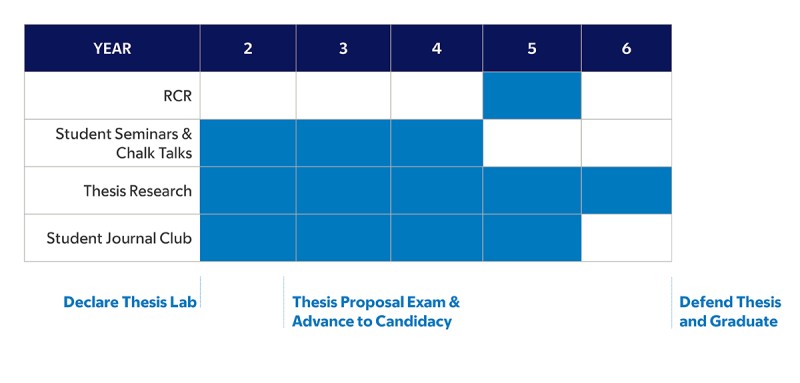 During the second year of study, students take part in the Current Topics Journal Club, along with Graduate Student Seminars and Student Chalk Talks, which continue throughout their graduate careers.