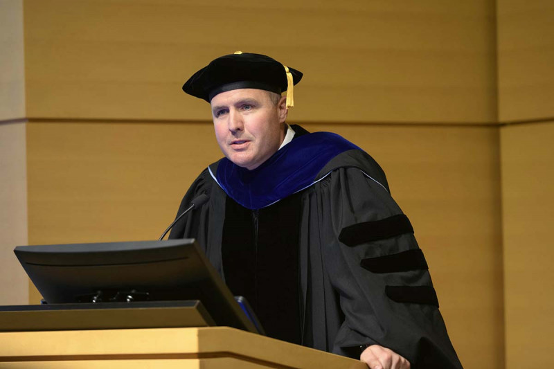 Another speaker at the ceremony was newly minted GSK graduate Scott Callahan. Dr. Callahan, who was chosen by his fellow graduates to act as student speaker, carried out his doctoral research in the labs of developmental biologist Lorenz Studer and cancer biologist Richard White. He conducted studies on the origins of melanoma using both zebrafish and human embryonic stem cells.