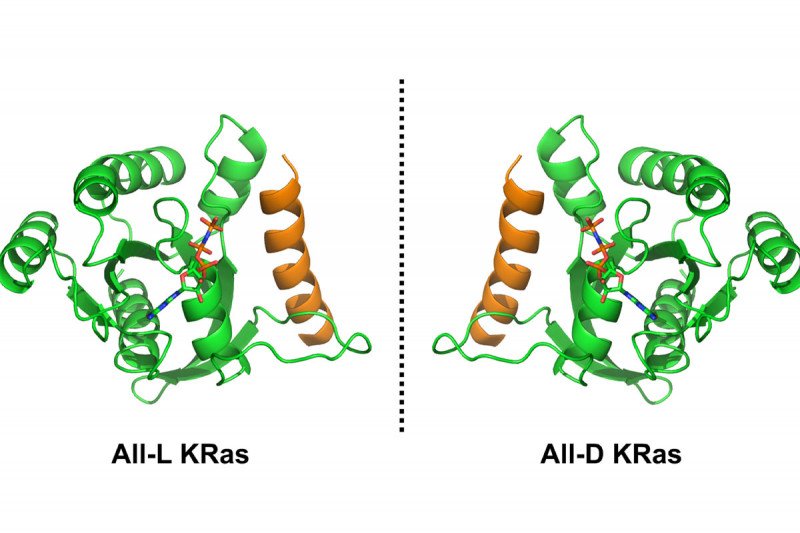 Access to this mirror-image version of KRas will now allow the team to screen a large library of L-peptides and determine which ones do the best job of blocking D-KRas. Once they identify the best candidates, they can synthesize the mirror-image D versions of these peptides, which should be active against natural L-KRas. And because these D-peptides are mirror images of those that occur naturally, they should not be recognized by the body’s metabolism, which would otherwise break them down. These D-peptides should be valuable starting points for developing new drugs to block KRas.
