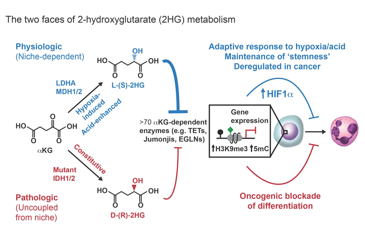 Define how L-2HG couples microenvironmental cues to a chromatin landscape that maintains the undifferentiated state of normal stem cells, immune cells, and cancer cells.