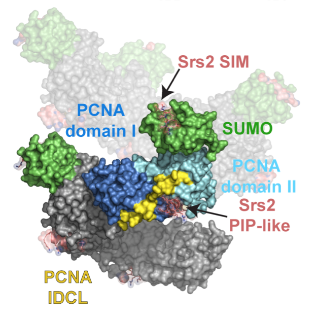 Ubiquitin and ubiquitin-like proteins are conjugated to other proteins to generate signals. In many instances, the Ub/Ubl-modified protein is specifically recognized by downstream factors. We focused on recognition of SUMO-modified PCNA, the trimeric ring that encircles DNA to facilitate replication and DNA repair. In budding yeast, SUMO-PCNA signals for recruitment of the anti-recombinogenic helicase Srs2 and we were able to determine that its C-terminal domain harbored tandem motifs, one for SUMO binding and one for PCNA binding, that were required for specific recognition of SUMO-PCNA in vitro and in vivo. Ongoing studies are aimed at addressed how other receptors specifically ’see’ Ubl conjugated substrates to elicit downstream signalling events.