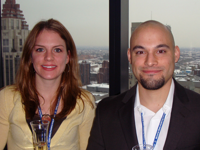 Gin Group members Bryan Cowen and William Walkowicz congratulate Renato