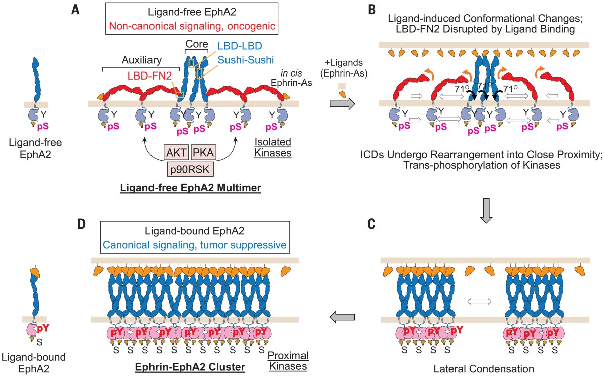 Shi X, Lingerak R, Herting CJ, Ge Y, Kim S, Toth P, Wang W, Brown BP, Meiler J, Sossey-Alaoui K, Buck M, Himanen J, Hambardzumyan D, Nikolov DB*, Smith AW*, Wang B*. (joint corresponding authors). (2023) Time-resolved live-cell spectroscopy reveals EphA2 multimeric assembly. Science. 2023 Dec;382(6674):1042-1050. doi: 10.1126/science.adg5314. Epub 2023 Nov 16. PMID: 37972196; PMCID: PMC11114627
